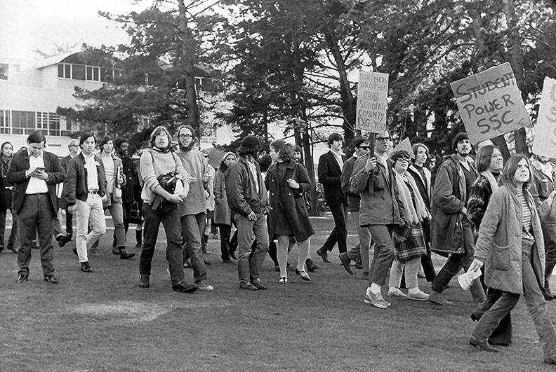 Students again protest for campus reform. Demonstrations are led by Students for a Democratic Society and the Third World Liberation Front.